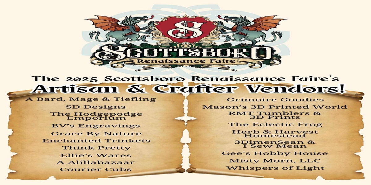 Scottsboro Renaissance Faire is a new and unique event coming to Scottsboro, Alabama. Our mission is to create unforgettable memories with the entire family with a touch of magic! There will be food vendors, live entertainment, artists, small businesses, and games for everyone to enjoy!